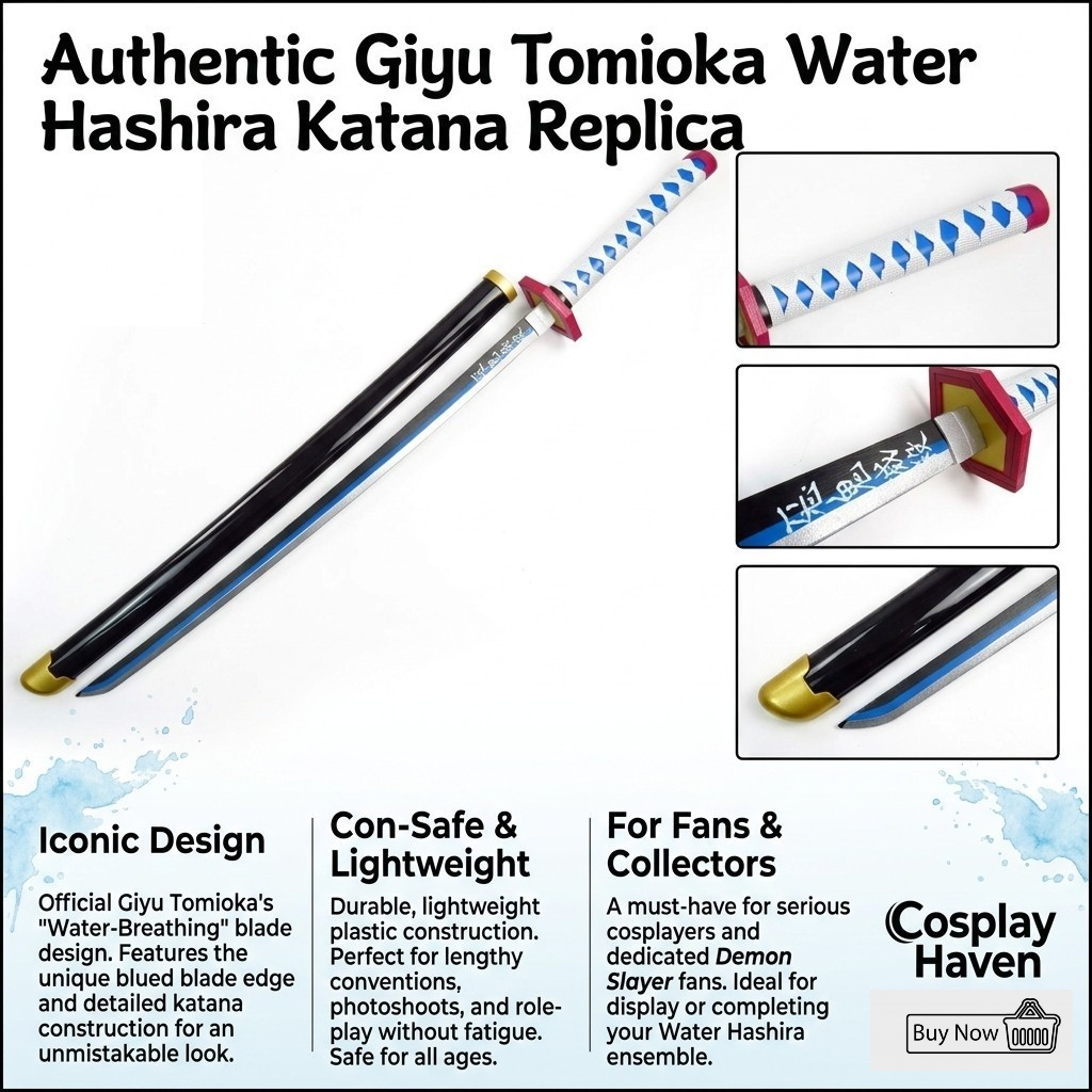 Whether you're a dedicated Demon Slayer fan, serious cosplayer, or collector, this sword delivers impressive visual impact. Display it proudly or wear it as part of your complete Giyu Tomioka costume. A must-have accessory for anime enthusiasts and convention attendees.