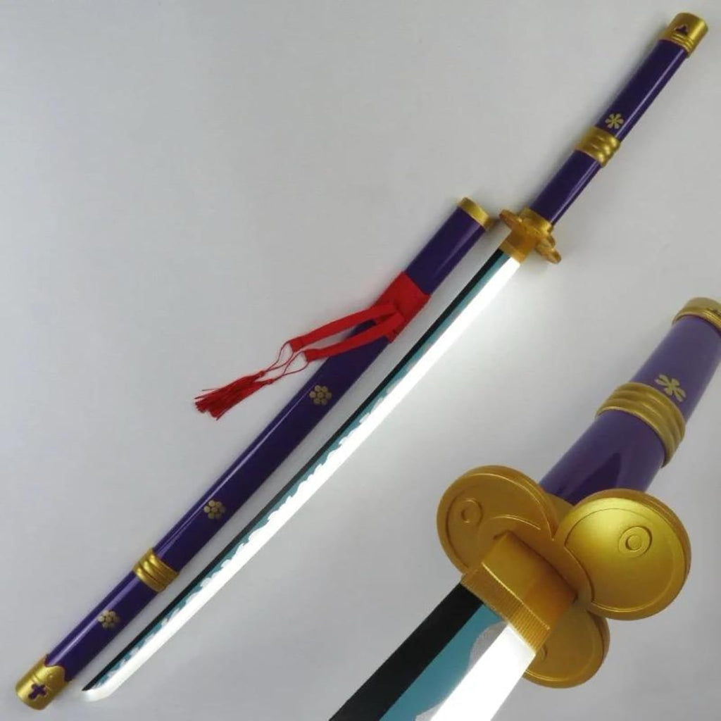 Bring the legendary Enma katana to life with this officially-inspired 104 cm full-size replica sword. Perfect for anime enthusiasts and collectors, this striking purple LED katana captures the essence of One Piece's most powerful weapon with authentic styling and impressive light-up effects.