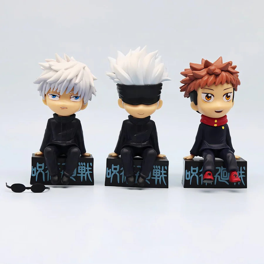 - Set of 3 Figures: This collection includes three meticulously designed figures, each capturing the essence of beloved characters from Jujutsu Kaisen in a charming sitting posture.
